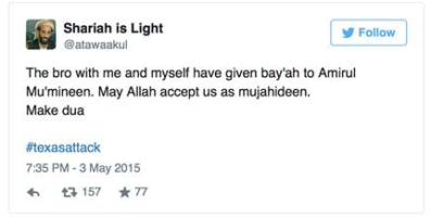 Se cree que Simpson envió un mensaje a través de Twitter antes del ataque usando el Hashtag #Texasattack, confirmó la fuente. La cuenta ha sido suspendida.