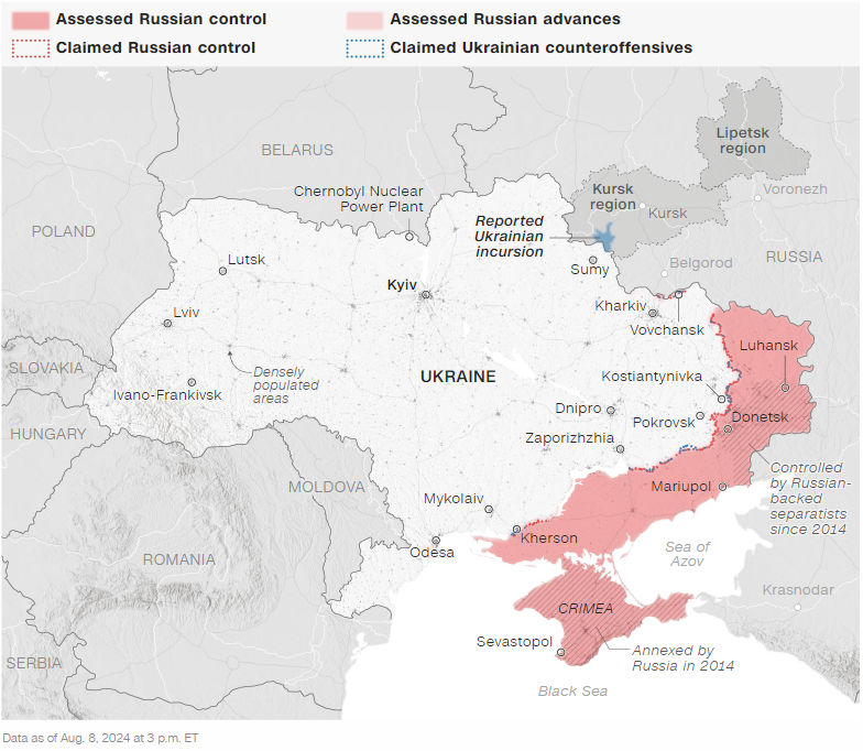 En su discurso a la nación, Zelensky agradeció a las fuerzas armadas ucranianas por "restaurar la justicia" y ejercer la presión necesaria sobre Rusia. La incursión ha dejado a Moscú luchando por contener el ataque, con decenas de miles de evacuados en Kursk y una "amplia operación antiterrorista" en marcha. Según informes, las tropas rusas han perdido el control de al menos 250 kilómetros cuadrados en Kursk, y Ucrania mantiene sus posiciones en la región.