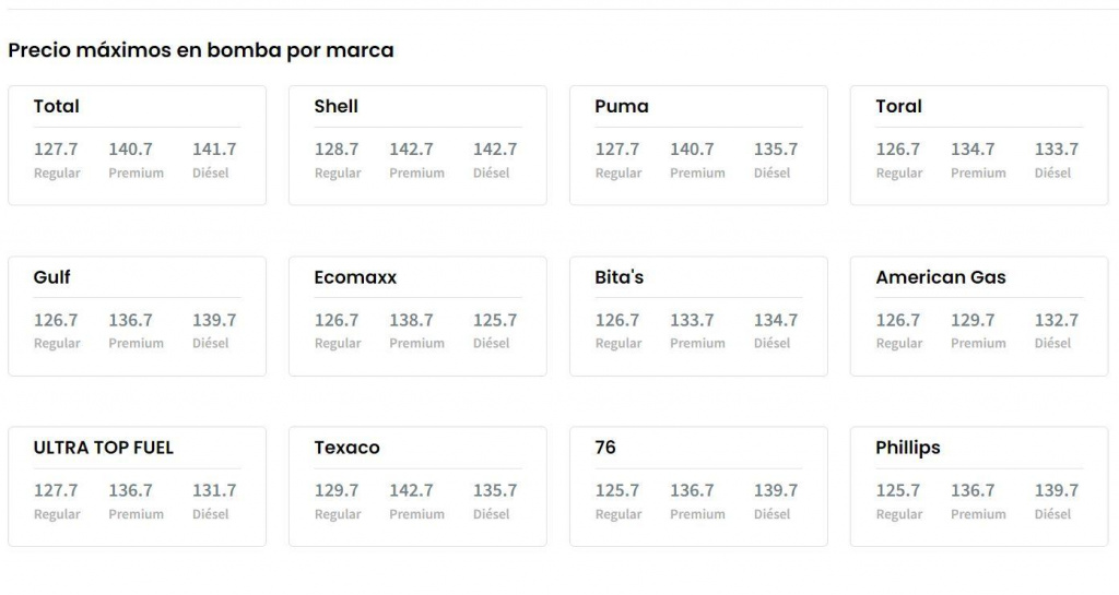 El Departamento de Asuntos del Consumidor (DACO) publicó el miércoles los precios máximos de gasolina por marca.
