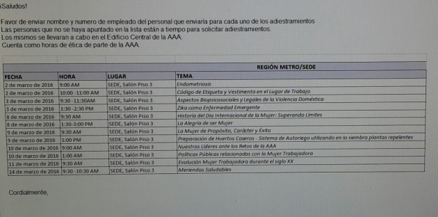 Tras la exclusiva de Tu Noticia PR, Alberto M. Lázaro Castro, presidente ejecutivo de la AAA y Lora Jean Espada Medina, asesora ejecutiva, tuvieron que cancelar el adiestramiento de cómo enseñarle a maquillarse a las trabajadoras.