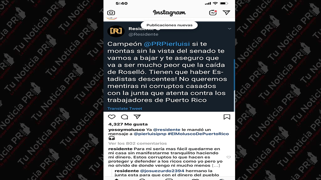 Calle 13 lanzó un nuevo mensaje en las redes sociales advirtiéndole al nuevo gobernador " Si te montas sin la vista del senado te vamos a bajar y te aseguro que será mucho peor que la caída de Rosselló” dijo el cantante.
