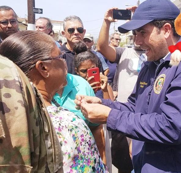 Custodiados por personal de la Policía y de la Guardia Nacional, Rosselló llevó la ayuda a los ciudadanos de ese emblemático sector.