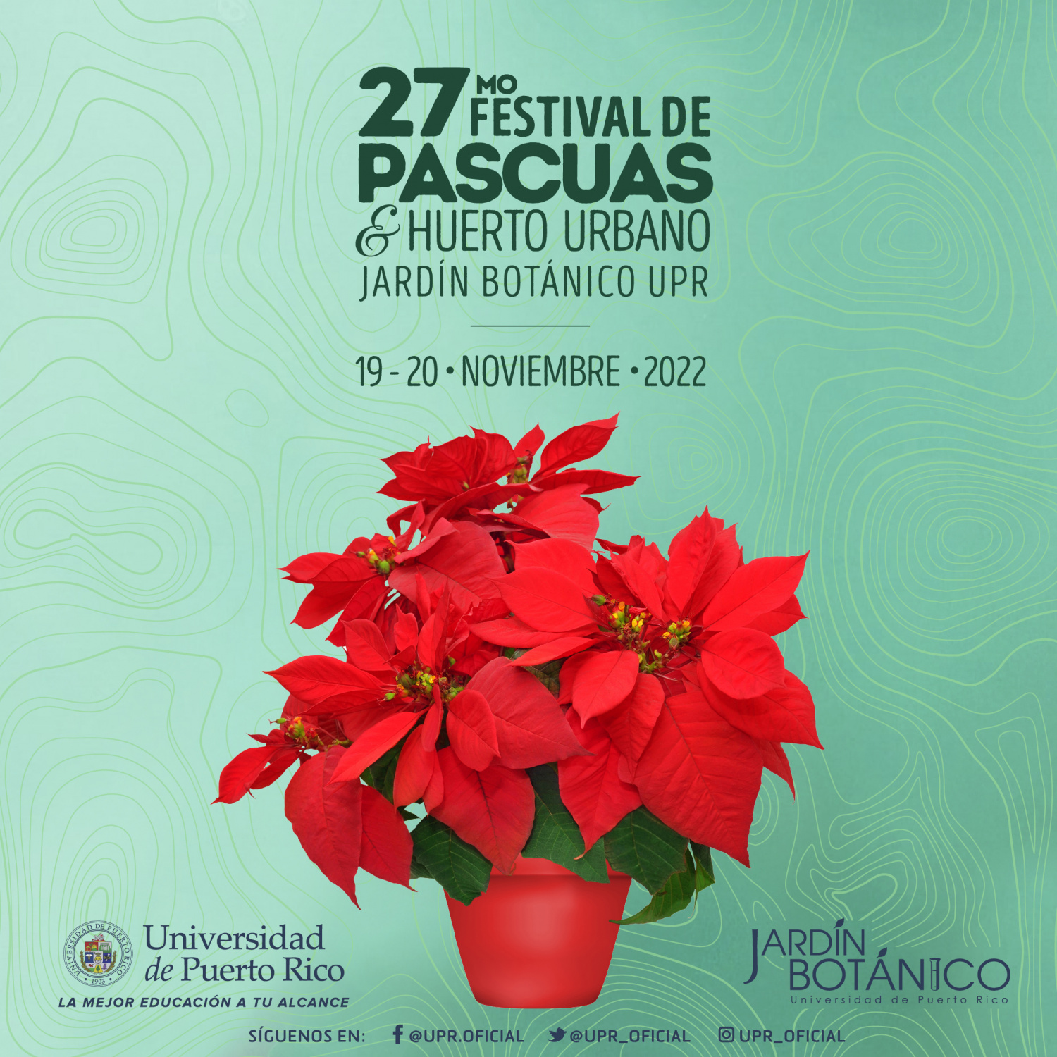 El Jardín Botánico de la Universidad de Puerto Rico (UPR) celebrará la vigésimo séptima edición de su tradicional Festival de Pascuas el sábado 19 y el domingo 20 de noviembre de 2022, de 9:00 a.m. a 5:00 p.m., en el área conocida como el "Huerto demostrativo” del Jardín Botánico Sur.