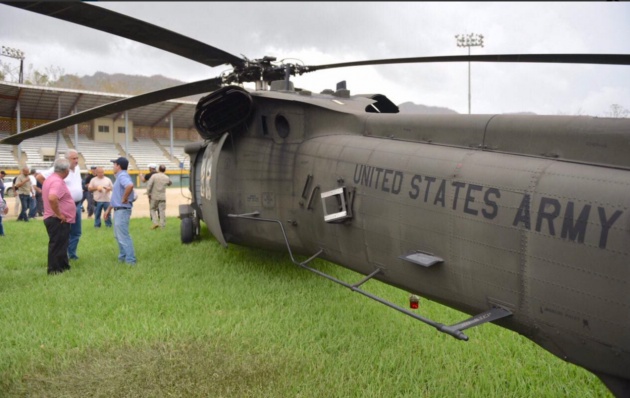 El gobernador Ricardo Rosselló Nevares llegó vía aérea al municipio de Jayuya, para entregar suministros al ayuntamiento, cuya población también sufrió por el paso del huracán María el pasado miércoles.