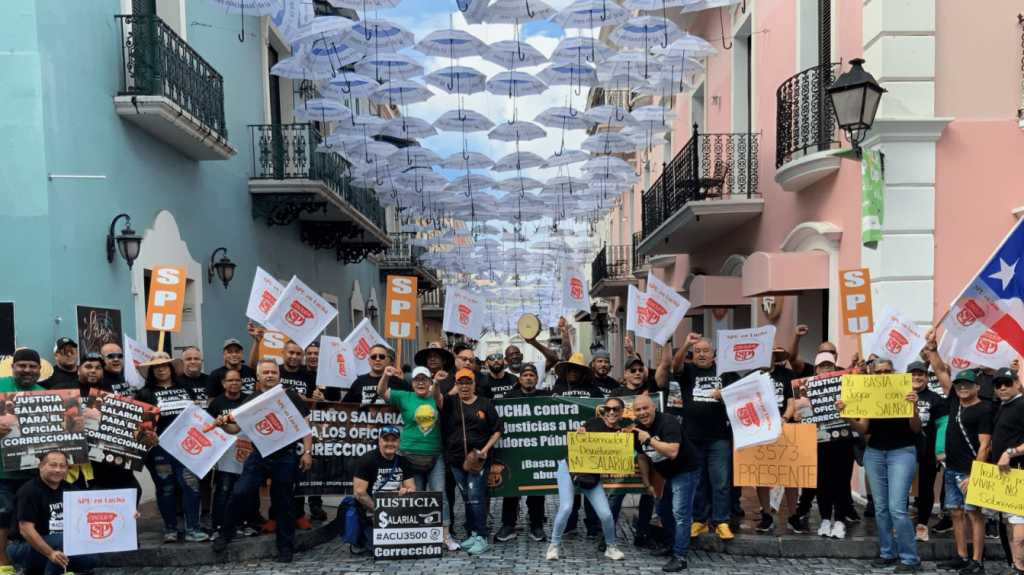 Frente a La Fortaleza, Servidores Públicos Unidos de Puerto Rico, Local 3251, y la Alianza Correccional Unida realizaron el viernes dos manifestaciones en las que le reclamaron al gobernador Pedro Pireluisi a que mantenga el aumento salarial otorgado a los trabajadores de la Administración de Rehabilitación Vocacional y cumpla con el incremento prometido a los oficiales correccionales.