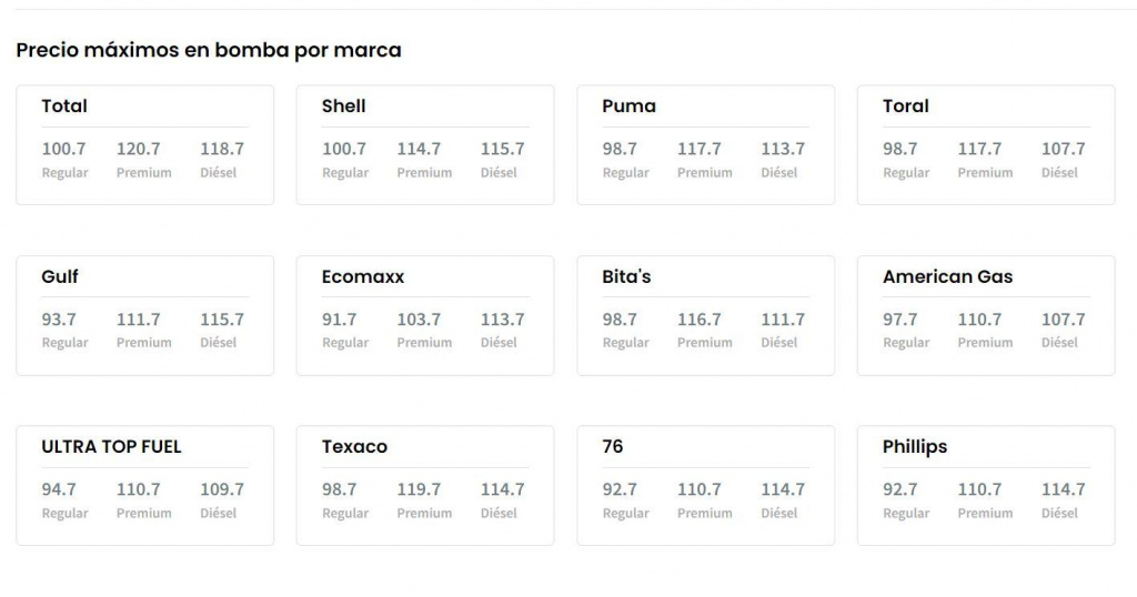 El Departamento de Asuntos del Consumidor (DACO) publicó el viernes los precios máximos de gasolina por marca.
