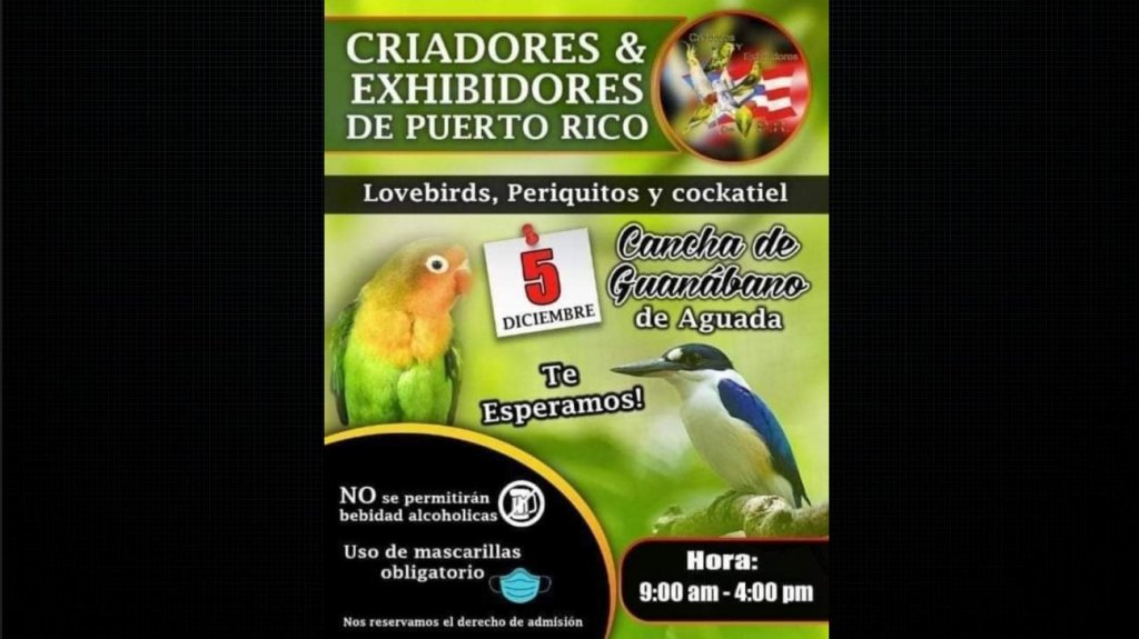 El evento será de 9:00 AM a 4:00 PM con todos los protocolos de seguridad, incluyendo el uso obligatorio de mascarilla. Se rifarán entre los presentes, una pareja de lovebirds y dos parejas de periquitos, con sus respectivas jaulas.