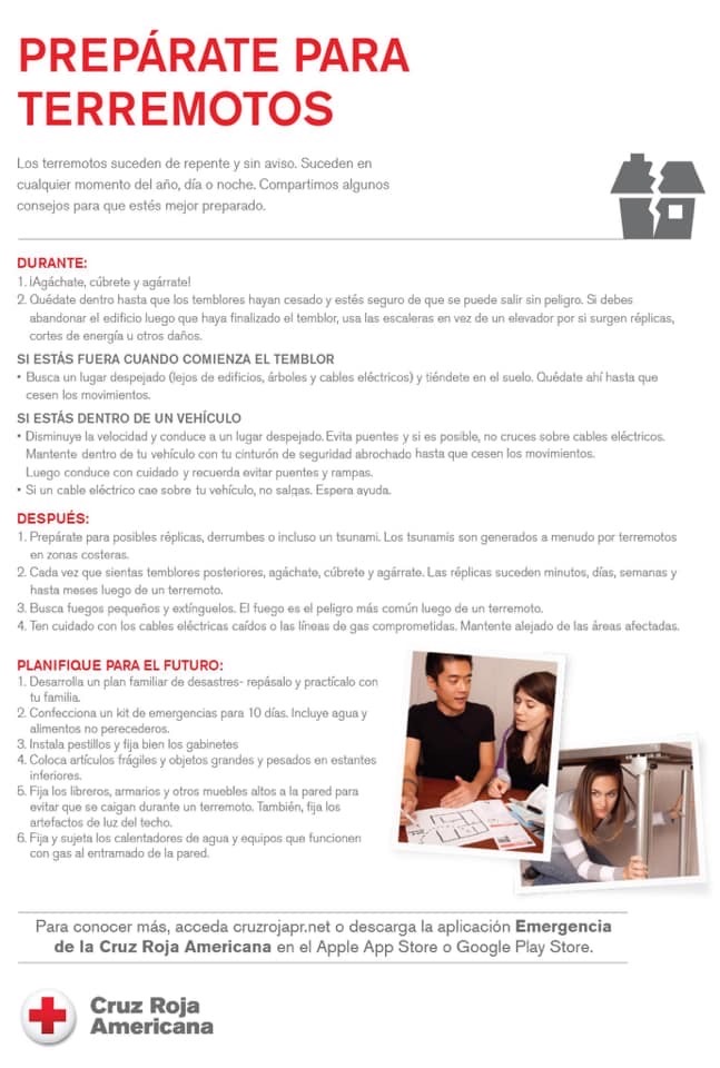 "Cada persona debe tener un Plan de Emergencia Familiar que contenga la información necesaria para que, junto a su familia, pueda enfrentar adecuadamente una emergencia o desastre. Es importante recordar que Puerto Rico se encuentra vulnerable a un terremoto y que estos fenómenos naturales no se pueden predecir. Los ciudadanos deben prepararse para los 365 días del año”, señaló Acevedo Caballero en declaraciones escritas.