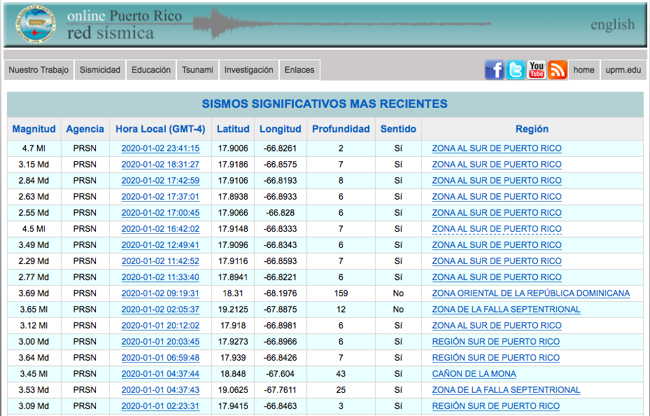 El temblor más reciente ocurrió a eso de las 11:41 de la noche del jueves con magnitud de 4.7 grados a cerca de una milla de profundidad. Más detalles sobre los sismos están disponible en: http://redsismica.uprm.edu/Spanish/ .
