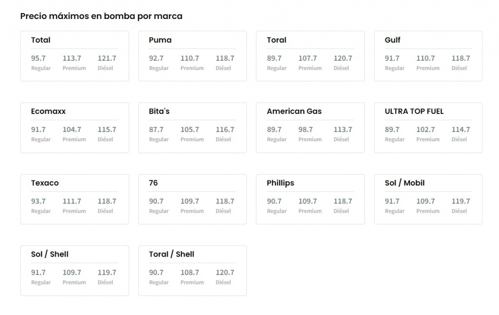 as gasolinas regular y premium, así como el diésel, mantuvieron los mismos precios mínimos y máximos informados ayer por el Departamento de Asuntos del Consumidor (DACO).