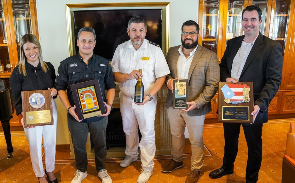 Una delegación compuesta por funcionarios del sector público y privado de Puerto Rico recibió al crucero, que tiene una capacidad máxima de 51 pasajeros y 85 tripulantes.