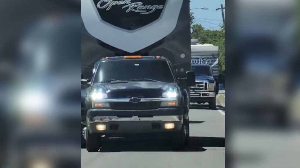 En el vídeo se muestran varios camiones cargados con campers en tránsito.