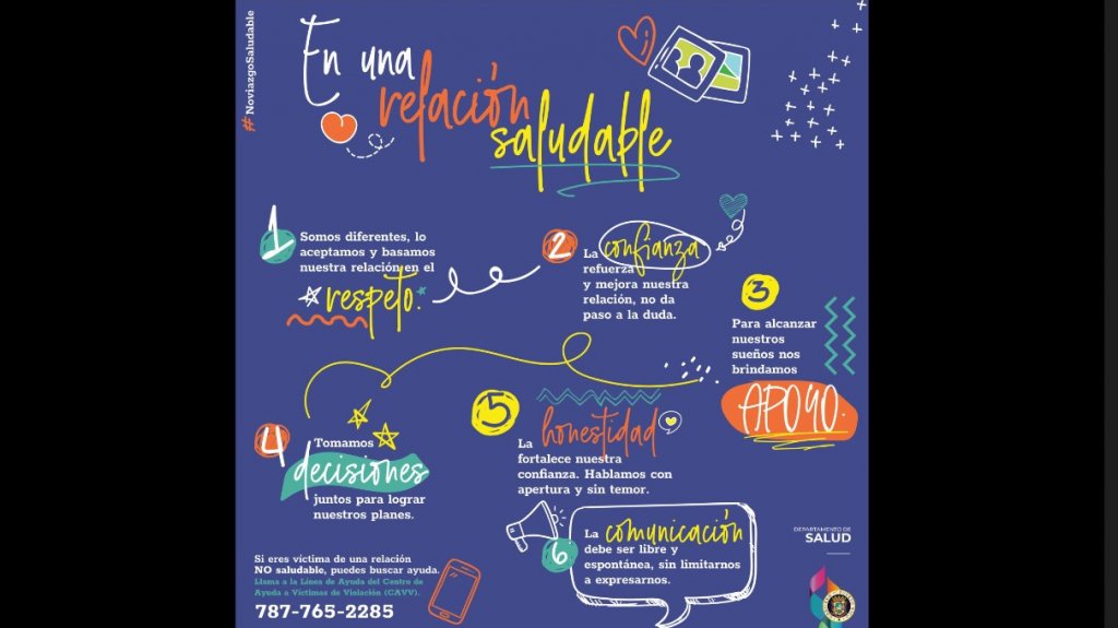 "La violencia no discrimina. Es un problema que está atacando a nuestra sociedad, que no excluye educación formal, estatus social o económico y ocurre tanto en adultos como adolescentes. Precisamente, esos primeros pasos de interés ocurren mayormente en la adolescencia donde se debe dar una amistad especial basada en el respeto mutuo, la comunicación, la ausencia de amenazas, la confianza y el consentimiento. Hay que inculcar a nuestros hijos y adolescentes la importancia de crear vínculos saludables”, expresó en comunicación escrita, la doctora Marilú Cintrón Casado, secretaría auxiliar de Salud Familiar y Servicios Integrados del Departamento de Salud.
