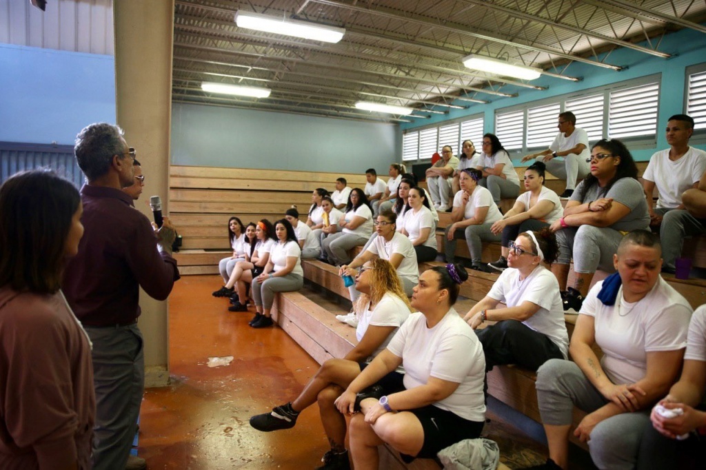 El secretario del Departamento de Corrección y Rehabilitación (DCR), Eduardo Rivera Juanatey, la acompañó para hacer entrega de donaciones y realizar varios anuncios.