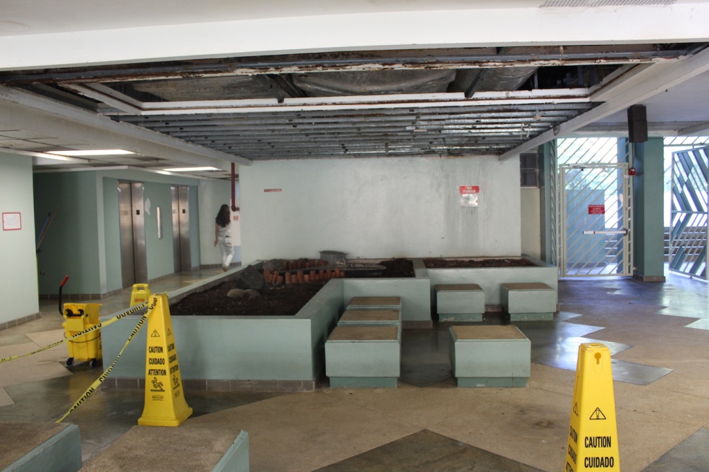 Otra área a la que también se recomendó cerrar el paso fue a la cafetería y el merendero del Centro de Estudiantes. En estos espacios, los ingenieros encontraron que el sistema del piso de la cafetería está completamente oxidado, por lo que instaron a que se realice una evaluación mucho más detallada del lugar. Rullán Toro dijo al CPI que ya se limitó el acceso a las zonas identificadas por los ingenieros.