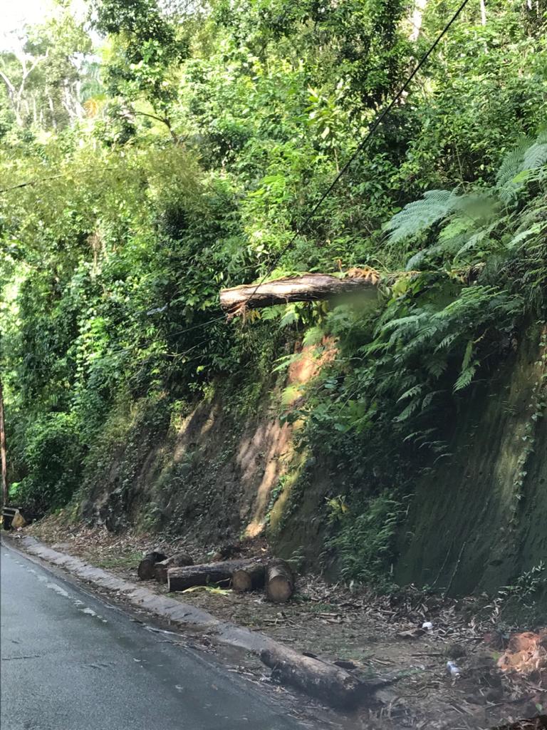 En cuanto a los troncos, amenazan la seguridad de los conductores y se encuentran colgando al menos desde la pasada semana, cuando se reportaron los sismos de mayor intensidad.