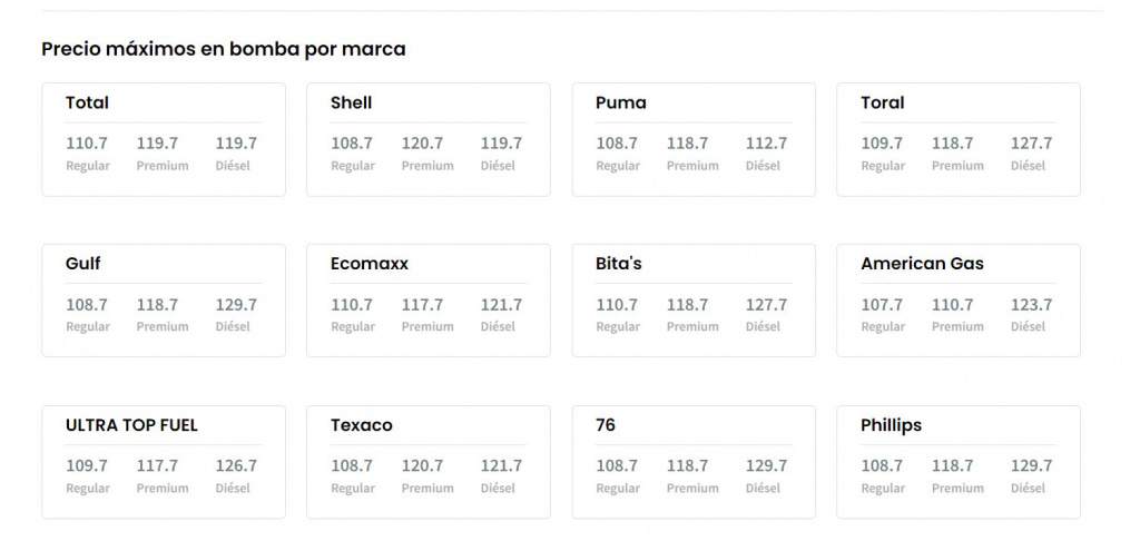 El Departamento de Asuntos al Consumidor publicó el lunes los precios máximos de gasolina por marca.