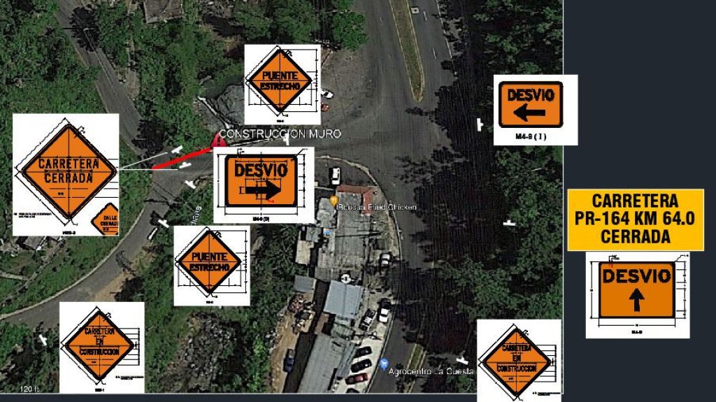 Como ruta alterna los conductores que se desplazan desde la PR-810 o PR-152 hacia la PR-164, deberán continuar por la PR-164 en dirección a la PR-5 y doblar a la izquierda en la intersección que conduce al residencial Candelario Torres. Luego continuar hasta llegar a la Calle Marginal y al final retomar la PR-164, cerca del negocio "La Esquina de las Papas" y viceversa.