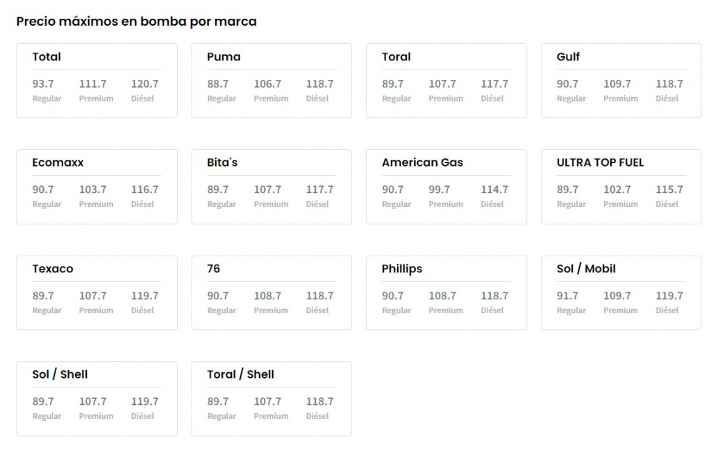 Las gasolinas regular y premium, además del diésel, no cambiaron sus precios mínimos y máximos con respecto a ayer y al fin de semana, según el reporte de hoy del Departamento de Asuntos del Consumidor (DACO).