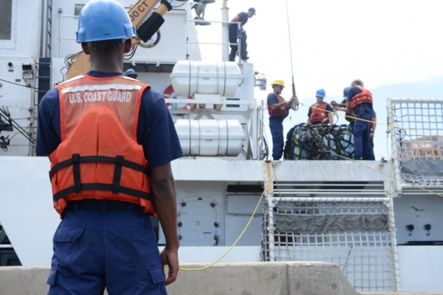 Miembros de la tripulación del guardacostas Cutter Venturous entregaron la ayuda, como parte del equipo del Departamento de Seguridad Nacional.