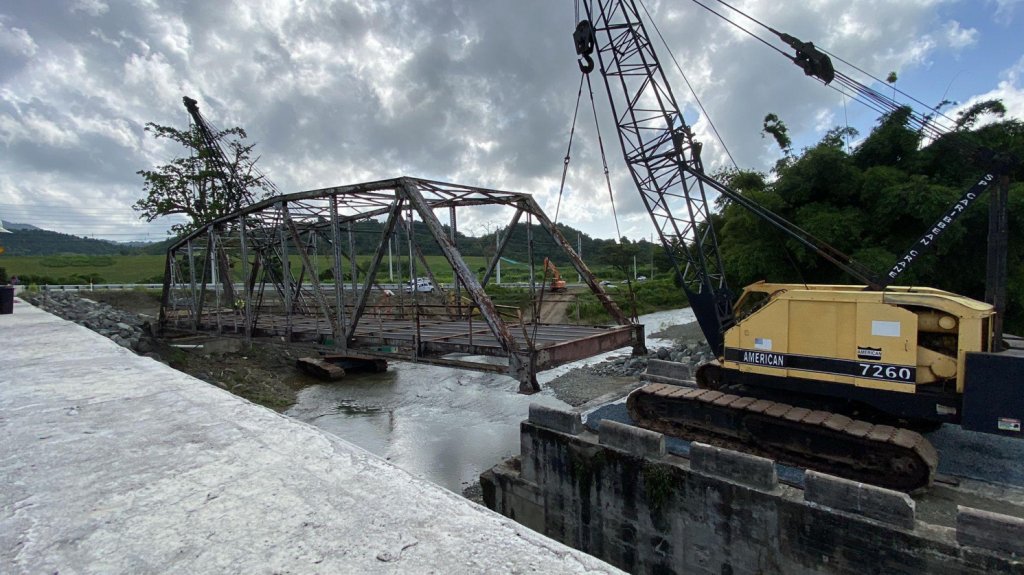 Personal de la Autoridad de Carreteras y Transportación (ACT) reubicó el martes, el puente de metal en la PR-31 sobre Río Blanco en Naguabo. Las labores consistieron en levantar el puente de metal, transportarlo y anclarlo en su nueva ubicación.