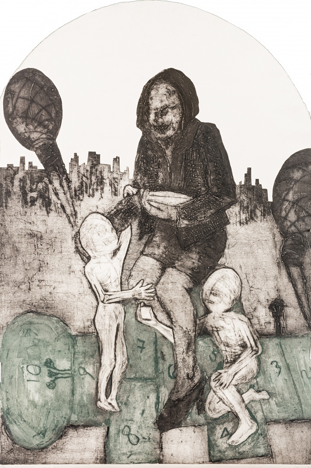 Baruch Vergara. Sembradora de ilusiones (1999). Colografía y punta seca sobre papel. Colección UPRM.