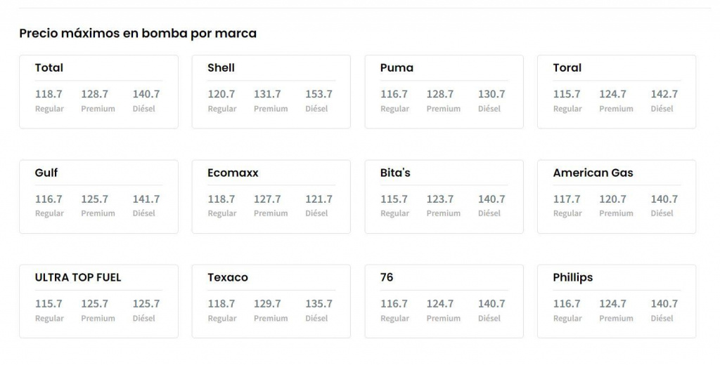 El Departamento de Asuntos del Consumidor (DACO) publicó el martes los precios máximos de gasolina por marca.