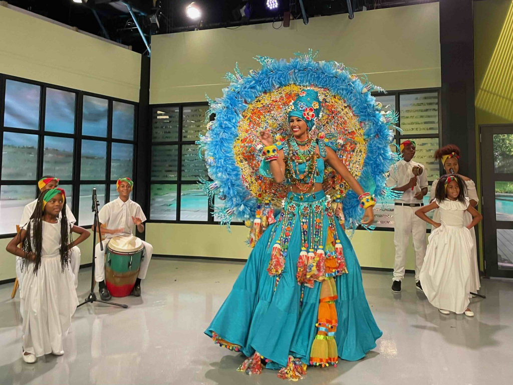 "¡Quería un vestido que tuviese color, movimiento y que transmitiera energía! Estoy sumamente feliz de poder llevar al escenario universal no solo estos elementos, sino también de poder representar la riqueza de nuestra afrodescendencia. El vestido simboliza la unión y la inclusión de la cultura caribeña, integrándose en una pieza”, expresó Michelle Marie.
