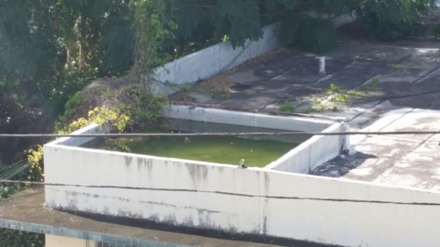 Vecinos de Mayagüez denunciaron a Tu Noticia PR que el edificio del Banco Popular cerca del centro vacunación  Hostos Medical Services existe prácticamente una piscina de aguas en un techo totalmente verde y propensa para el criadero de mosquitos