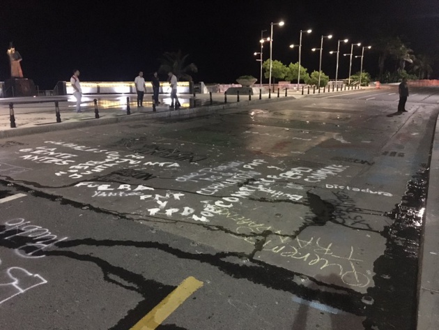 Los ánimos se caldearon cuando el grupo comenzó a cerrar la carretera y entonces comenzaron a vitorear "Pal carajo la junta fiscal”  "Maestro Muévete” es entonces cuando el grupo trato de entrar al capitolio a la fuerza, causando danos a la puertas y parte de la estructura
