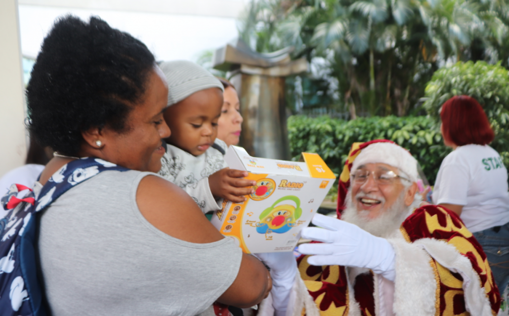 Los niños recibieron regalos de parte de Santa Claus y libros cortesía de Santillana. En la música, EDP College llegó junto a su trulla para un excelente comienzo de la Navidad. INS