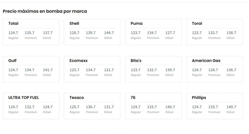 El Departamento de Asuntos del Consumidor (DACO), publicó el miércoles los precios máximos de gasolina por marca.