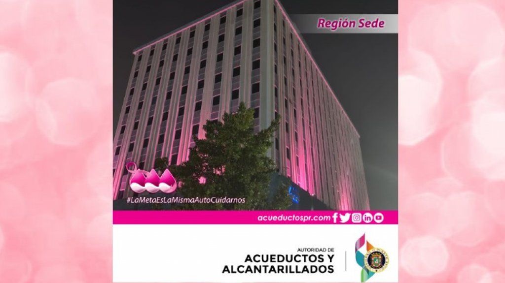La Autoridad de Acueductos y Alcantarillados (AAA) se unió a la campaña de concientización sobre la importancia de la detección temprana del cáncer de seno con la realización de mamografías a las empleadas que se registren y la iluminación de color rosado de distintas instalaciones de la agencia en señal de compromiso con la causa.