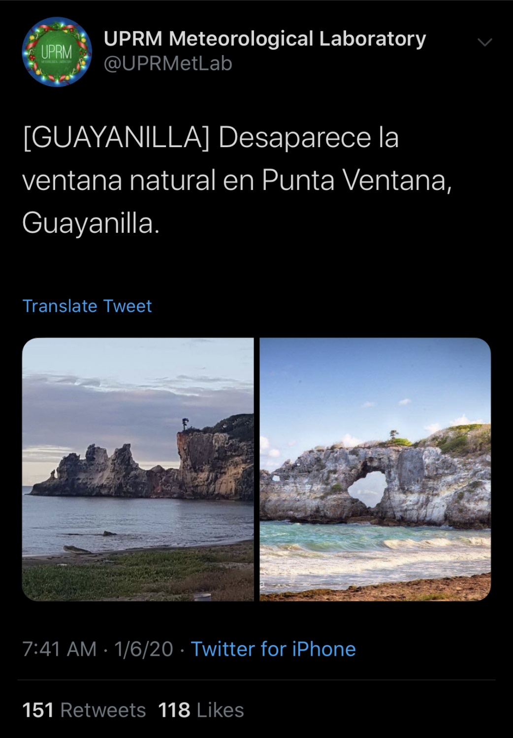 "Es la misma secuencia de temblores que hemos tenido desde el 28 de diciembre (de 2019). Este ha sido el más fuerte. Han ocurrido un sinnúmero de daños, según tenemos conocimiento. En Guayanilla colapsó una residencia y en Guánica tenemos otro problema con otra residencia. Ha habido derrumbes de piedras en la carretera PR-2 entre Guayanilla, Peñuelas. Los que van guiando para esa área van a coger un poco de tráfico”, dijo Acevedo en una transmisión en vivo por Facebook.