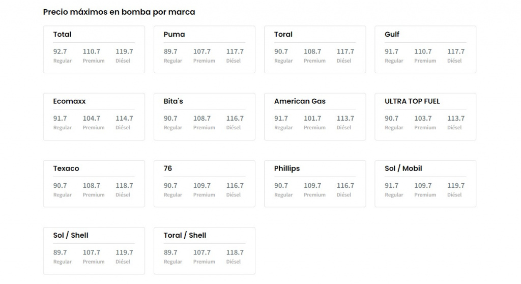 Combustibles varían entre uno y dos centavos sus precios mínimos y máximos