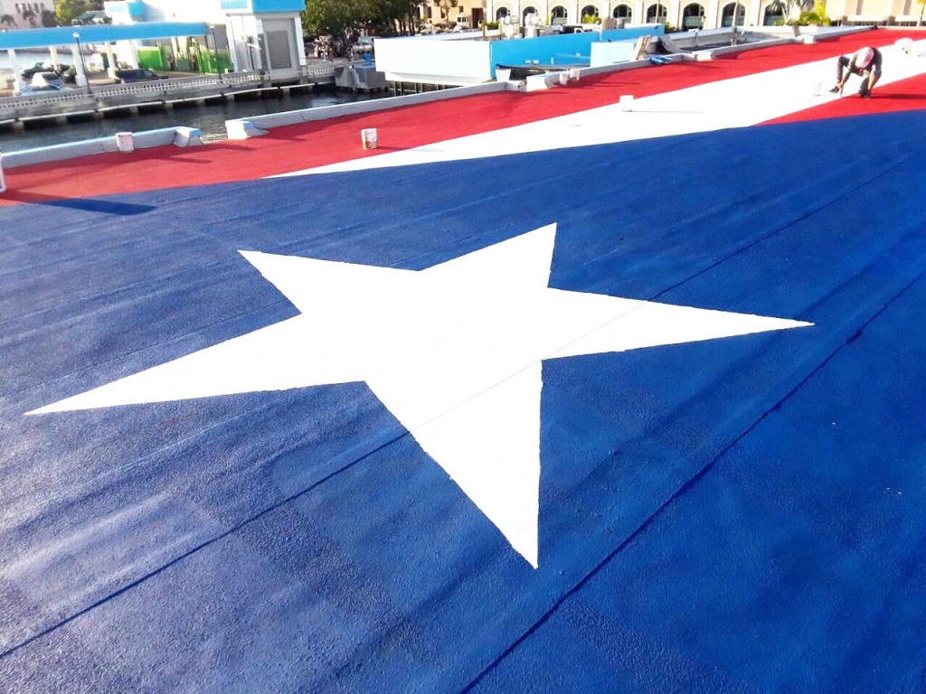 La monoestrellada fue pintada por un grupo de jóvenes que durante varias noches se dedicaron con pasión a darle color al techo de la terminal 2, que lleva pasajeros a Cataño.