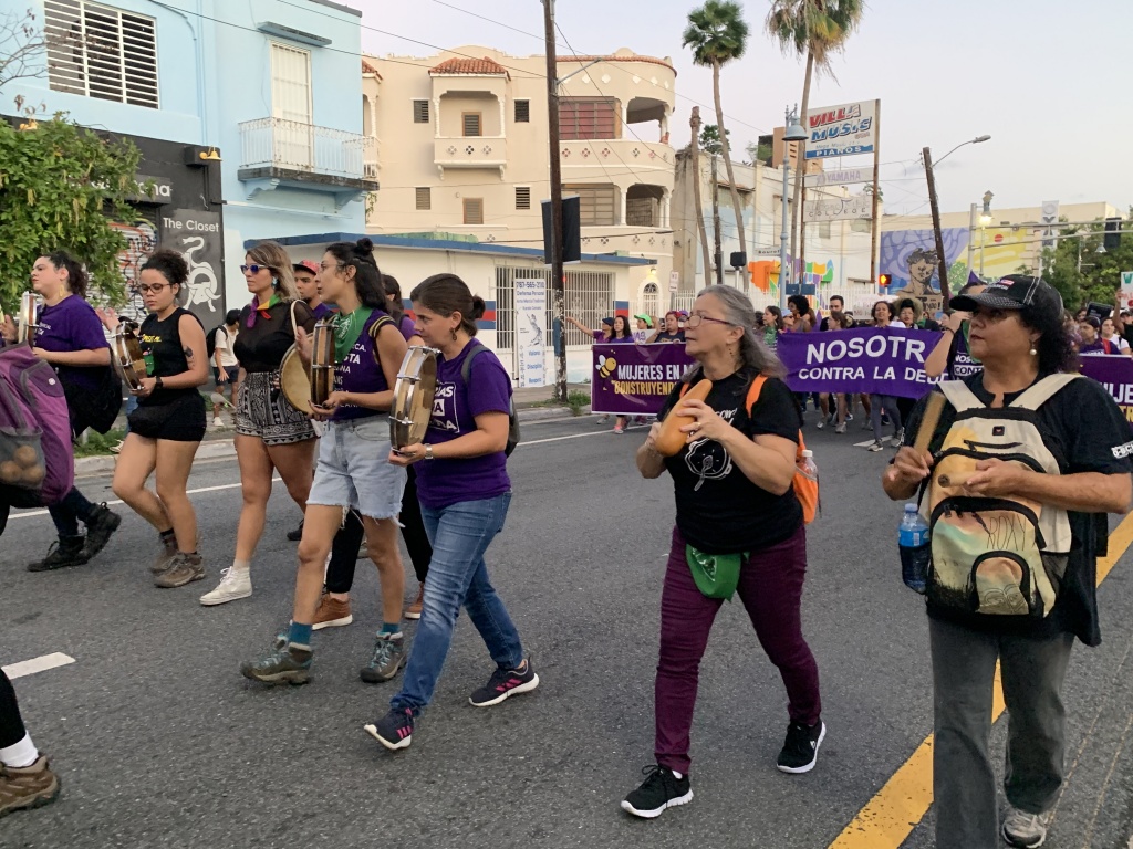 La marcha discurrió principalmente por la avenida Ponce de León, después de manifestarse frente al edificio donde tiene la Junta de Supervisión Fiscal (JSF) sus oficinas, enarbolando consignas como "Se siente, se siente, se siente la presión, mujeres en la calle, viene una revolución” o "Patriarcado y capital, una alianza criminal”.
