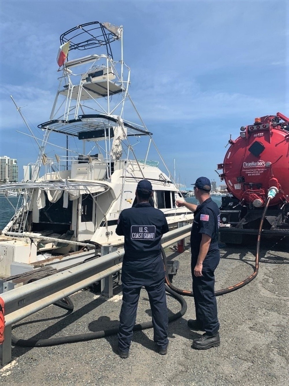 Personal de la división de Gestión de Incidentes de San Juan de la Guardia Costera completó las operaciones de extracción de petróleo y otros productos combustibles que amenazaban con derramarse desde un barco de pesca deportiva abandonado en el puerto de San Juan.