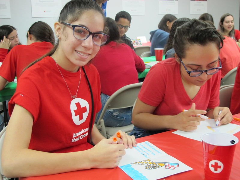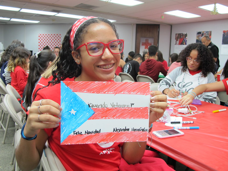 Confeccionan 150 jóvenes de la Cruz Roja 1,800 tarjetas navideñas para militares puertorriqueños