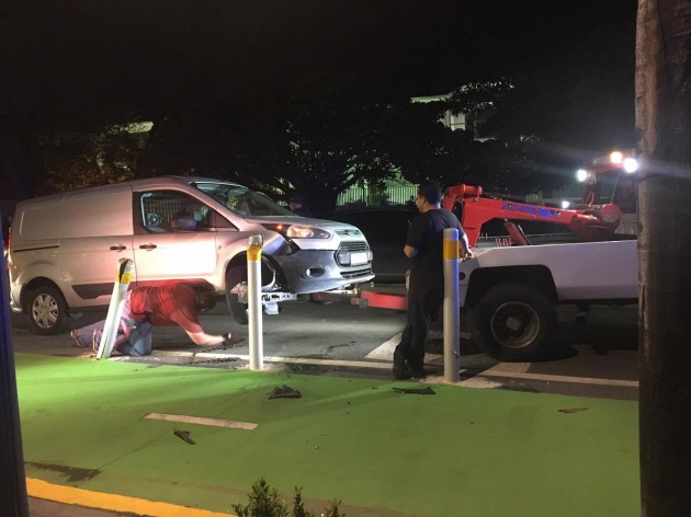 El pasado viernes una mujer quedo encima de los postes que crean la valla de seguridad entre la, ciclo vía y lo carriles de autos.