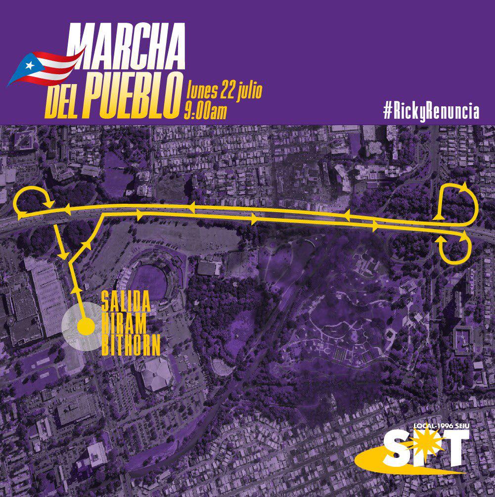 "La invitación es a marchar desde el estadio Hiram Bithorn, saliendo desde la avenida Roosevelt hacia el Expreso Las Américas hasta la avenida Piñero y regresando en dirección contraria al complejo deportivo por la Avenida Roosevelt, emulando la ruta de la marcha que contribuyó a sacar a la marina de guerra de los EE.UU. de Vieques a principios de este siglo”, dijo el presidente del Sindicato Puertorriqueño de Trabajadores, Roberto Pagán.