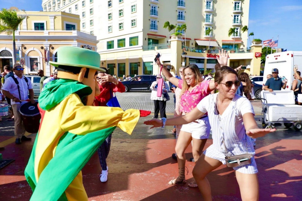 Los cruceristas fueron recibidos desde horas de la mañana con una celebración musical al ritmo de pleneros y una comparsa de batuplena que recorrió las calles del Viejo San Juan.