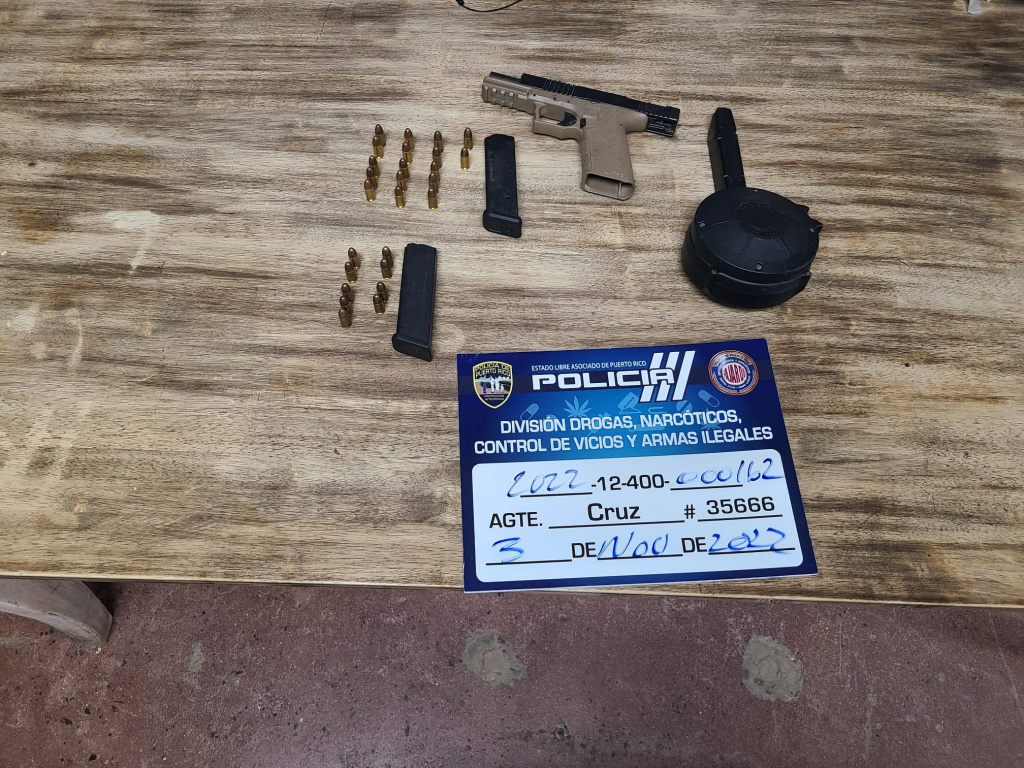 En otras informaciones, mientras agentes realizaban las órdenes de allanamiento y registro expedida por la Juez Imari Colon Masso, del Tribunal de Fajardo, en la calle 14, JL-265, de Alturas de Rio Grande; se logró el arresto de Neyka Marcano Matos de 26 años y Félix Bauzó Guzmán de 28 años. A estos se le ocupó; una pistola modelo 22, calibre .40, número de serie PFV-455, ocho cargadores .40, un cargador tipo tambor y 202 municiones .40, 265 capsulas de crack, una bolsa mediana con picadura de marihuana, una bolsa mediana con cocaína en polvo, $2,139.00 dólares, una pesa eléctrica, una máquina para contar dinero y parafernalia. La investigación fue realizada por el agente Enrique Leguillú. El caso fue consultado con el fiscal de turno, el cual instruyó mantenerlos en la celda hasta la posible radicación de cargos.