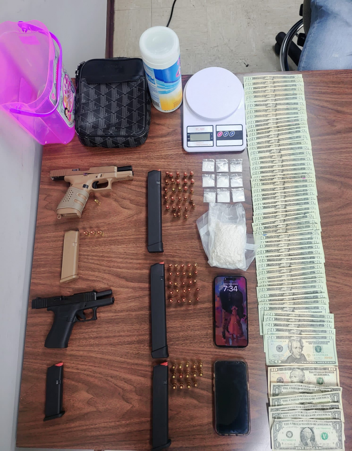 Los agentes encargados del allanamiento confiscaron una pistola Glock 19, calibre 9 milímetros, así como una pistola Glock 43, cinco cargadores calibre 9 milímetros, 71 municiones del mismo calibre y $1,115 en efectivo.