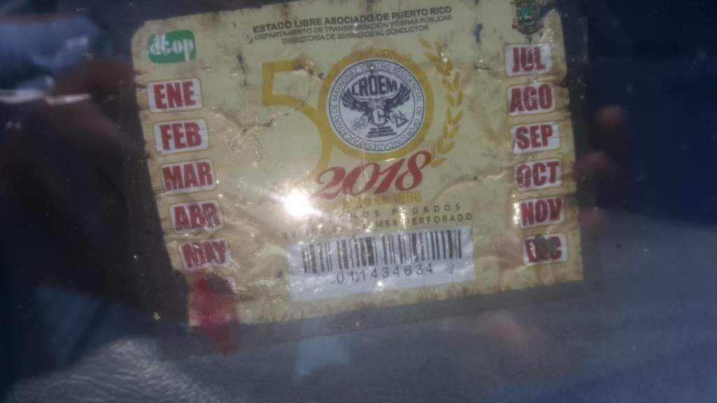 Al verificar los documentos correspondientes se percata que el conductor tiene licencia vencida desde el año 2002, en violación al artículo 3.23 de la Ley 22, además el auto tenía un marbete falso violando así el artículo 215 del Código Penal y una denuncia al Tribunal por violación al artículo 4b de la Ley 253 de Seguro de Responsabilidad Pública.