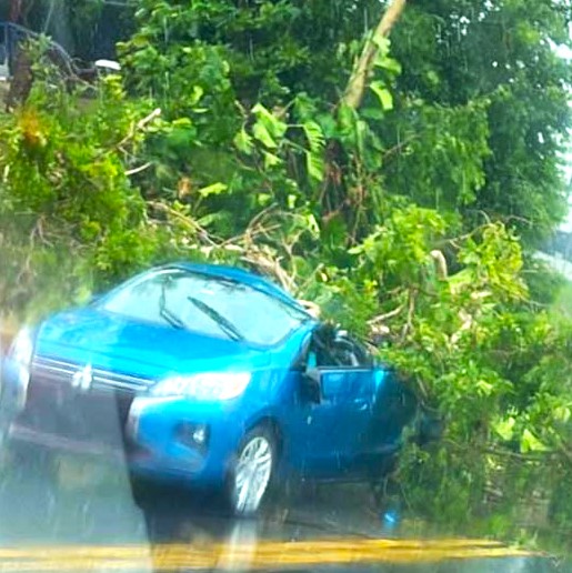 Fotos: Árbol cae sobre vehículo que transitaba en Yabucoa