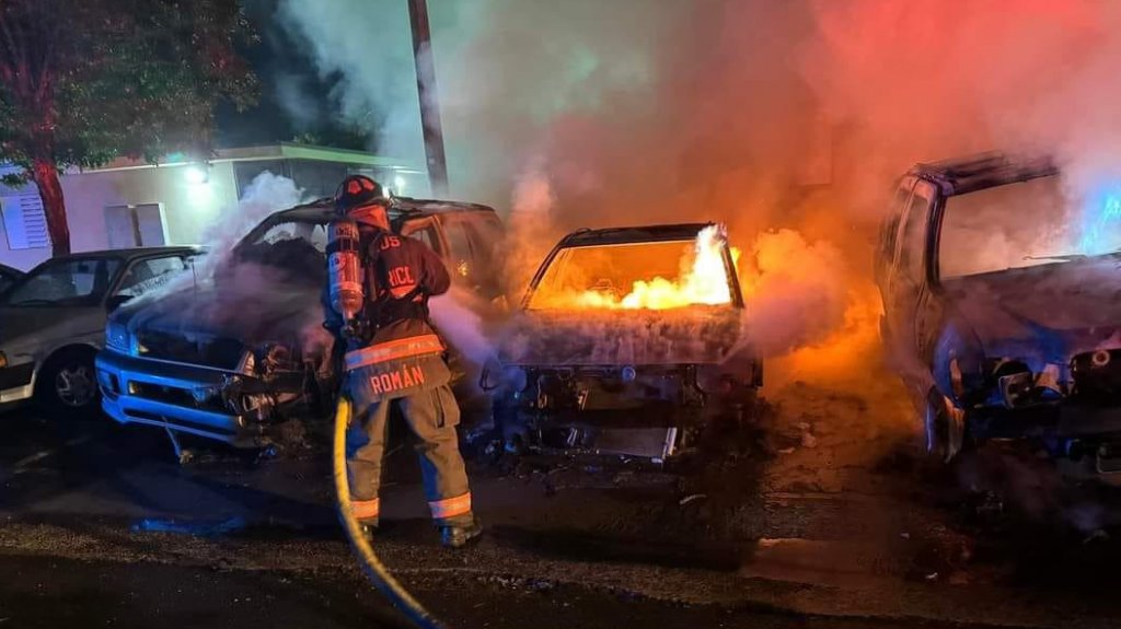 En la madrugada de hoy, miércoles, agentes del distrito de Fajardo, adscritos al Negociado de la Policía de Puerto Rico, fueron alertados sobre un incendio que afectó a tres vehículos en la entrada del residencial Pedro Rosario Nieves, en Fajardo. Las circunstancias del siniestro aún se encuentran bajo investigación.