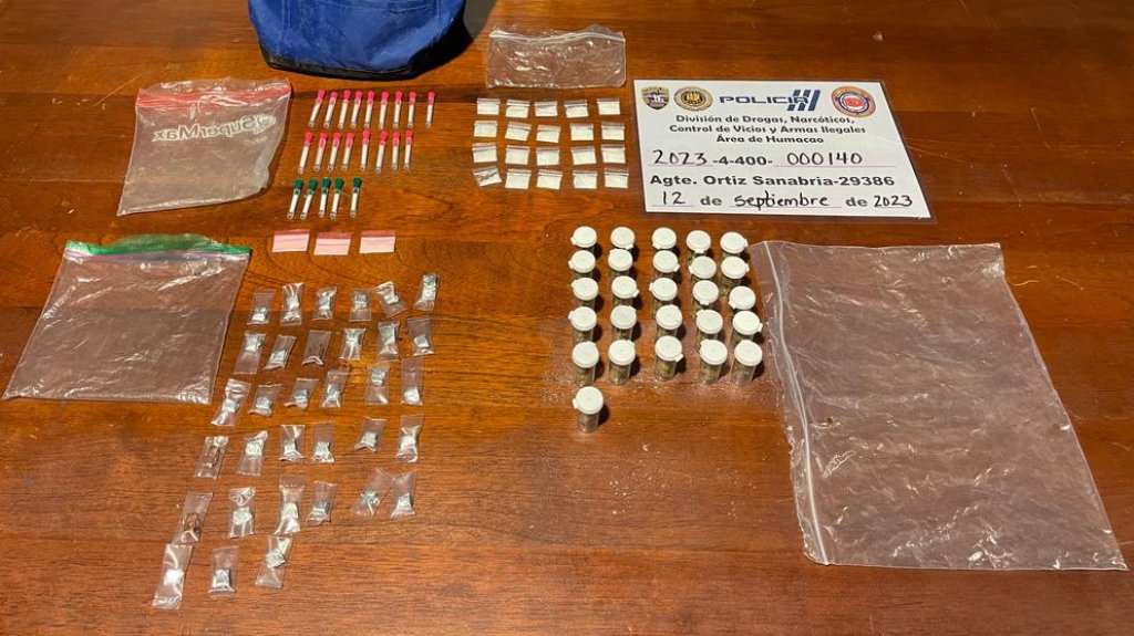 En el residencial Ignacio Morales Dávila, en Naguabo, se detuvo a José A Rivera Gómez, de 23 años. Durante su arresto, se incautaron 26 envases de marihuana, 33 bolsitas de heroína, 22 cápsulas de crack y 23 bolsitas de cocaína.