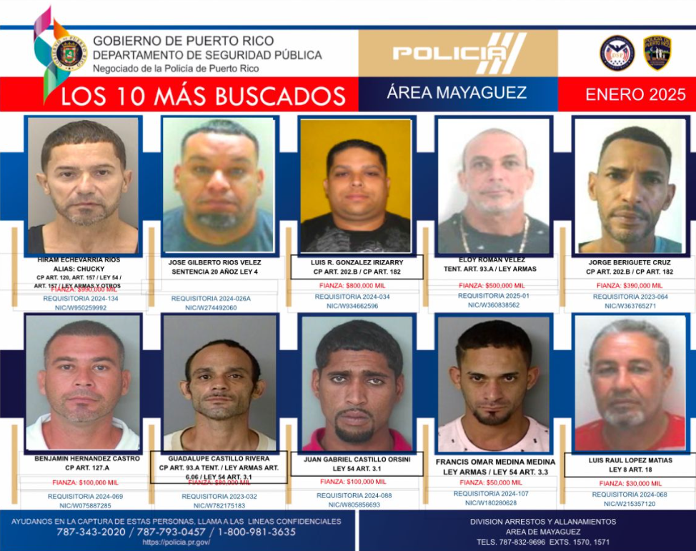 Se advierte que todos estos individuos son considerados armados y extremadamente peligrosos. La cooperación ciudadana es crucial para ayudar a mantener la seguridad pública en la comunidad de Mayagüez.