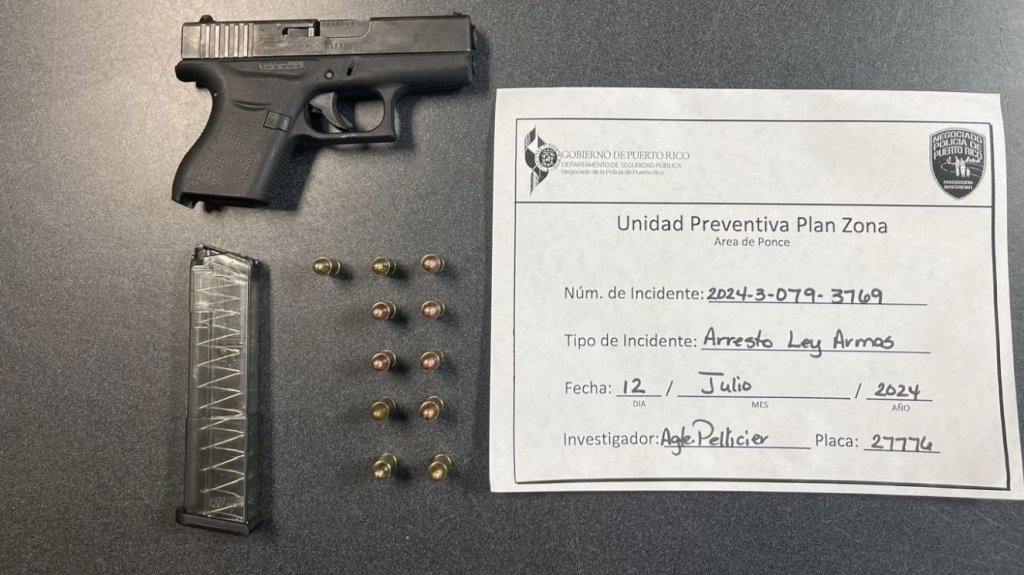 Agentes adscritos a la Unidad Plan Zona Ponce, en horas de la noche de ayer, viernes, realizaron el arresto de un hombre por infracción a la Ley de Armas, en el sector Cantera, calle Eugenio Sánchez, en Yauco.